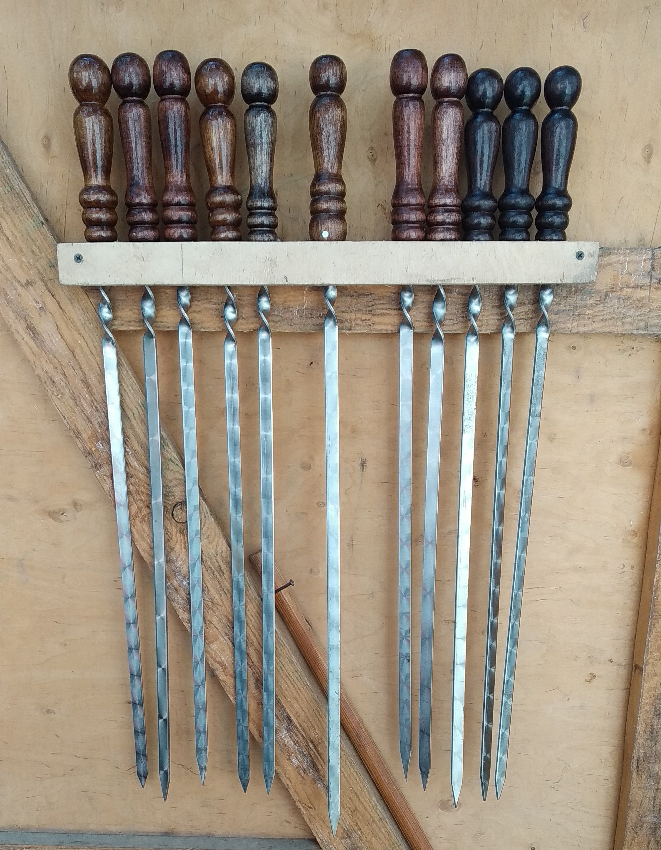 Сегодня превратил кочергу в 11-й шампур. Нашел им всем место на двери сарайчика, где хранится и мангал в том числе.... мир и гармония поселились в моем сердце