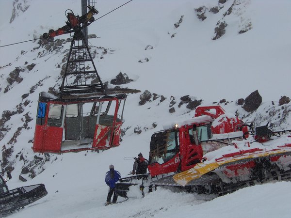 Вчера не обратил внимание на опору ЛЭП в кадре видео. Это действительно Эльбрус, третья очередь Мир - Гарабаши (первые две - вагончик), а не Чегет-2. В сезон ею никто не пользуется, ибо очень медленная, да и идет не до самого верха горнолыжной трассы. Но сейчас все очереди современной канатки (французская POMA) не работали, вот старушку и включили...