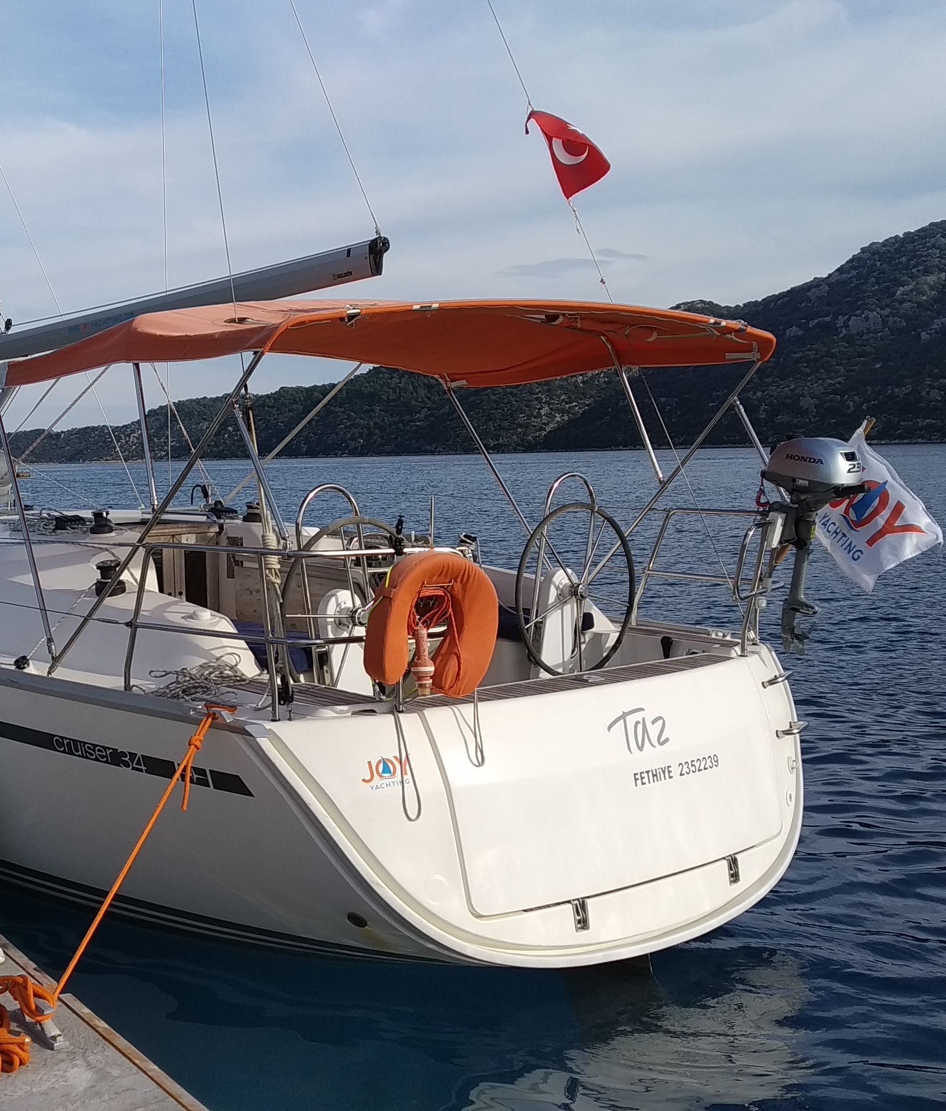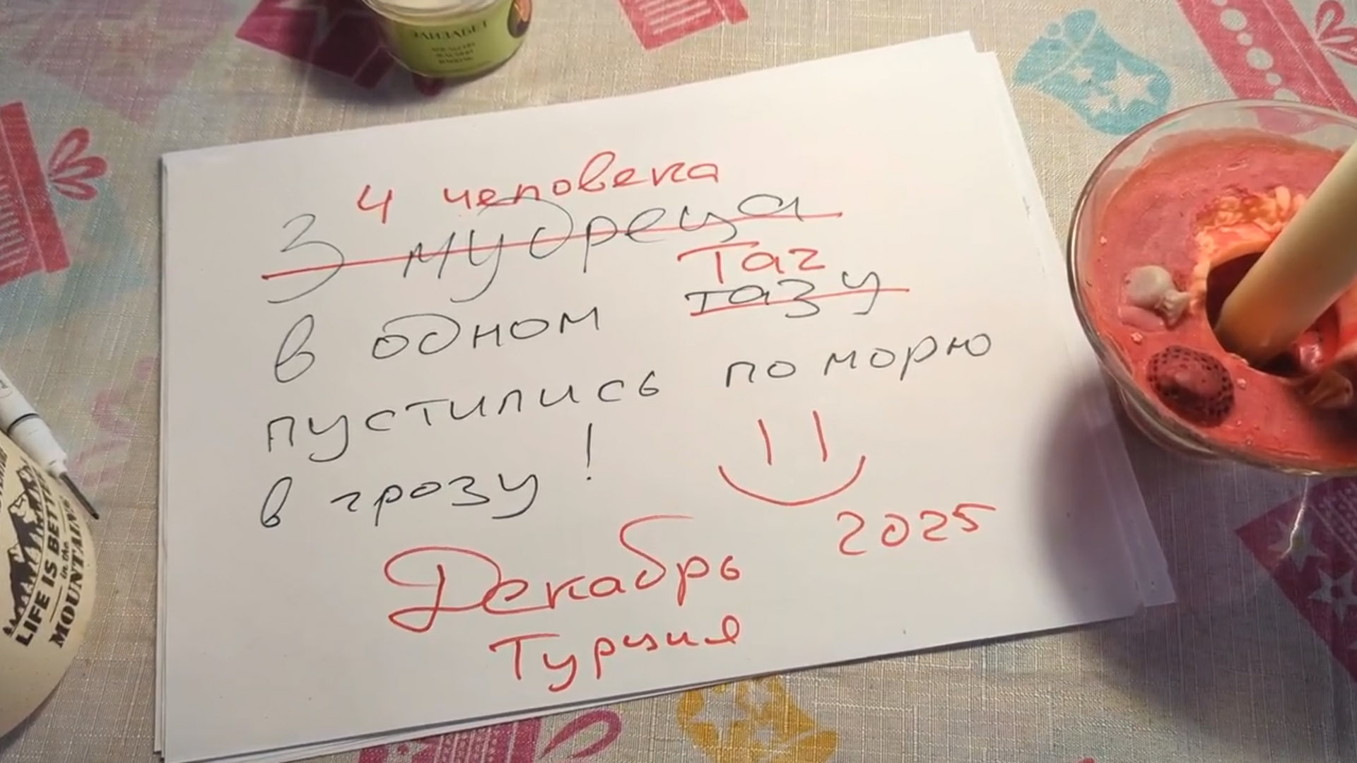 Радио вызывает нас. Обычно все сообщения идут на турецком, потом повторяются на английском, но тут сразу на английском, я различаю фразу ”Sailboat Taz, we have gold news for you”. Кэп кубарем скатывается к рации, доверив управление Владимиру (на лодке два штурвала). Через некоторое время я слышу русское ”Таз… это Сан Сити 6, по-русски говорите?”. Они позавчера нашли и подобрали Тузика в открытом море, сейчас выходят из Каш Марины, мы договариваемся о точке встречи. Такие же путешественники, как мы.
